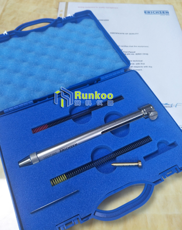 產品詳細介紹Erichsen318德國儀立信318硬度計 318S試驗棒 318牛頓筆測試程序 便攜式 318 硬度試驗棒使用特別簡單。通過滑桿可設置估計或已知彈簧壓力。將儀器垂直放在測試表面,以 10 mm / sec 的速度劃一根 5~10 mm 的直線。測試頭會產生一條肉眼僅看得見的劃痕。如果彈簧壓力太高,劃痕會很清晰,如果彈簧壓力太低,將沒有劃痕出現。通過鎖定滑桿每次可以控制所需的壓力,單位為牛頓。