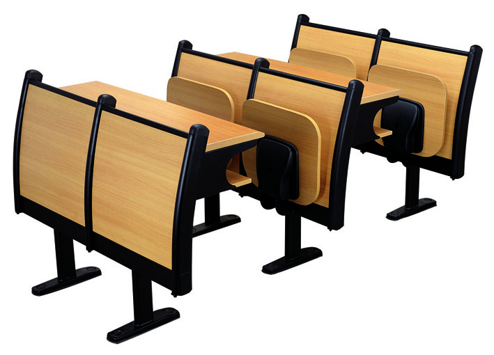 2、座板:采用厚度為15mm多層板經模具熱壓成型,面粘櫸木皮或防火板,,后經 PU封邊精制而成,牢固耐用,不褪色。 3、寫字板、采用厚度為25mm高密度板,層板厚度為12mm,表面粘櫸木皮或防火板,后經PU封邊精制而成,牢固耐用,不褪色。 5、腳架:采用35*80*1.5蛋形優質國際鋼管,經模具沖壓,焊接,精磨,表面再經防銹靜電噴涂處理,實用牢固,承受力大。 6、堅固螺絲:采用靜電噴涂圓柱頭內六角螺桿,堅固、耐用、不易生銹。 7、座架結構:采用4MM冷拉鋼板沖壓焊接成型,與彈簧組合回復結構,快速到位,永不失效。 8、座橫梁:采用40*80*2.0MM方管,表面再經防銹靜電噴涂處理,實用牢固,承受力大。
