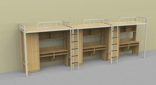 產(chǎn)品詳細(xì)介紹一、規(guī)格尺寸 1、單邊(三人位)尺寸 5840*900*2085mm 二、鐵件部分材質(zhì)說(shuō)明: 1、床立柱:兩端采用 61*61mm 的Q195 材質(zhì)六邊形棱型管,立柱上下端加裝工程塑料防護(hù)套件, 保證架體與地面接觸無(wú)聲,防止學(xué)生擦掛。 2、床橫梁:采用 32*72*1.2mm 的 Q195 材質(zhì)(P 型管)型材,冷軋鋼板采用一次性滾壓成型,增 4 六人間 (三人 位爬梯 式)連 體公寓床 加承受能力,整體牢固美觀。 3、護(hù)欄:采用 25*25*1.2mm 方管鑲 1.0mm 油壓成型鋼板; 4、床板梁:采用 6 根/位 25*25*1.2mm 方管,增強(qiáng)承重能力。 5、爬梯:采用 Q235 材質(zhì) 25*25*1.2mm 方管,加裝防滑塑膠踏板,防止打滑踏空。 6、床板:采用 12mmE1 級(jí)環(huán)保多層板。 7、鏈接方式:采用 25*195*2mm“H”型卡扣式連接(無(wú)螺絲連接,整體全隱裝) 8、表面處理:鋼件焊接采用二氧化碳保護(hù)焊,金屬表面經(jīng)過(guò)打磨、脫脂、酸洗、水洗、中和、 表 調(diào)、磷化、烘干,再采用杜邦塑粉靜電噴塑處理、高溫固化等工序。 三、木質(zhì)家具材料說(shuō)明 1、衣柜:采用上下兩層設(shè)計(jì),突出最大儲(chǔ)物空間,衣柜上層內(nèi)配置(直徑 19mm)不銹鋼掛衣 桿,基材采用 18mm 厚度的 E1 級(jí)環(huán)保板材制作;五金件:采用優(yōu)質(zhì)五金配件;柜門(mén)鎖:采用明鎖 暗掛,底部加裝 9mm 高靜音,防潮腳墊; 2、學(xué)習(xí)桌:基材采用 18mm 厚 E1 級(jí)環(huán)保板材,封邊:截面處采用優(yōu)質(zhì) 1.2mm 厚封邊條,桌面: 采用 25mm 厚E1 級(jí)環(huán)保板材,甲醛釋放量達(dá)到國(guó)家 E1 級(jí)環(huán)保標(biāo)準(zhǔn),底部安裝 9mm 高的靜音防滑 防潮腳墊; 四、床體布局 1.床位長(zhǎng)度采用錯(cuò)開(kāi)式布局,上下鋪床位長(zhǎng)度 2 米,單上鋪長(zhǎng)度 1.92 米,適用于房間尺寸有 限的情況下滿足不同身高的學(xué)生需求。 |