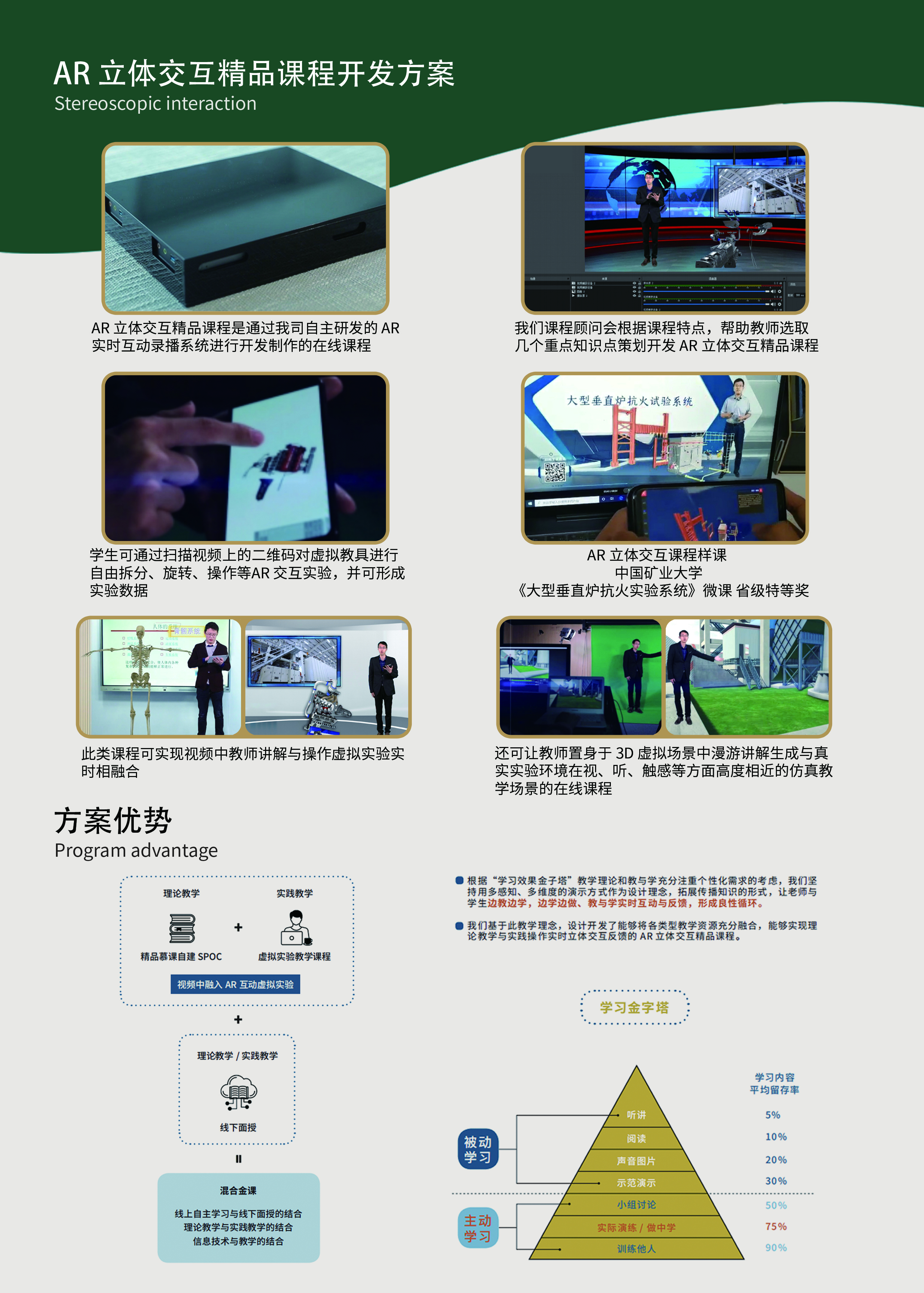 產(chǎn)品詳細(xì)介紹AR互動(dòng)仿真系統(tǒng) 隨著在線學(xué)習(xí)、移動(dòng)學(xué)習(xí)作為新興的教學(xué)培養(yǎng)方式,各學(xué)校對(duì)在線課程資源的制作需求數(shù)量和品質(zhì)的要求越來越高,因此對(duì)在線課程制作的效率和呈現(xiàn)效果提出更高要求。 我司一直致力于服務(wù)學(xué)校在線教學(xué)視頻、動(dòng)畫、虛擬仿真實(shí)驗(yàn)等各類型課件資源的開發(fā)制作,積累了豐富的開發(fā)經(jīng)驗(yàn)和高效率的服務(wù)團(tuán)隊(duì)。