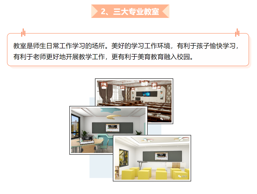 | 區域美育整體解決方案。創藝號美育綜合建設方案,做到“三建設,三提升”,建設美育創新型課程模式,提升區域整體教學能力;建設美育發展性評價體系,提升學生藝術綜合素養;建設美育專業化場地課程,提升學校優質特色發展,有效服務美育進校園、進中考。 |