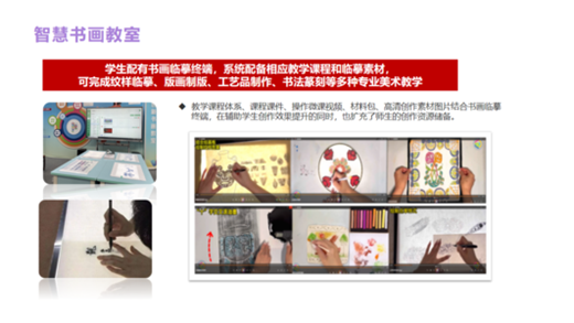 創藝號智慧書法教室是把傳統書寫工具和信息化設備進行整合,在不改變用戶使用習慣的情況下,達到滿足不同地區不同用戶的教學需求,填補書法教師師資力量薄弱的空缺,幫助學校和師生開展互聯網時代的教學。隨著國家對傳統文化教育的重視,課堂教學中提高漢字書寫能力的教學要求逐漸清晰,而針對《中小學書法教育指導綱要》教學所需的師資力量還遠不能滿足教學需求。傳統的書法課堂教學形式過于呆板、學習方法相對落后、學習效率低下,無法適應互聯網時代的廣泛應用。中小學智慧書法校園即可部署在常態化教室中滿足日常漢字書寫教學練的需要,又可形成做特色化硬筆、毛筆書法功能教室。教學系統中的配備成長型課程體系、各類音視頻資源、課程課件、漢字文化知識以及書法歷代碑帖確保教師教學標準有質量,融合的學生端智能書寫工具,配合書寫智能評價算法和各類教學方法,確保學生書寫規范又高效。將為眾多老師書法課堂有質量高標準的滿足書法教學。
