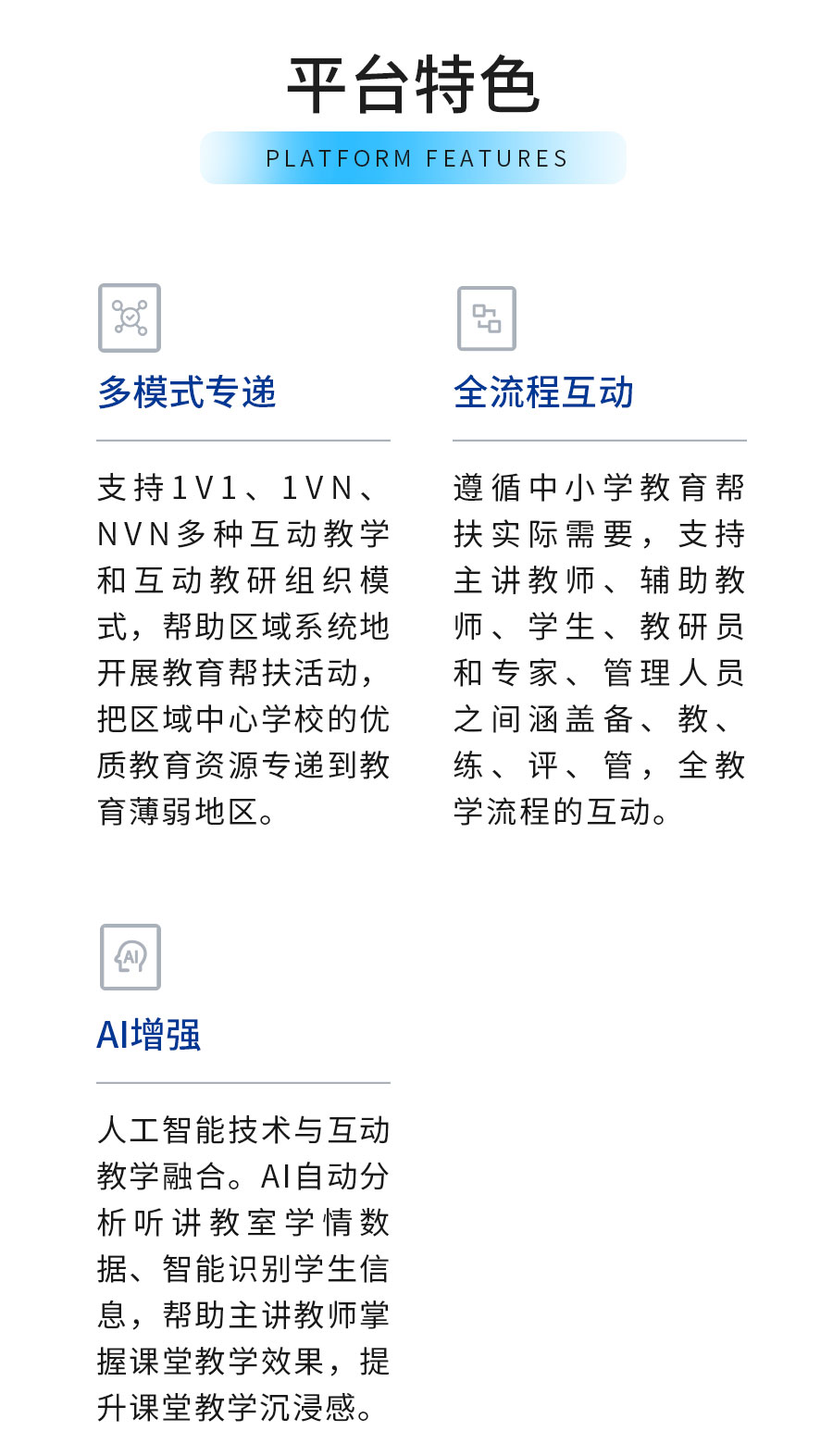 AI教研應用、錄播系統、智慧教室、“三個課堂”解決方案等