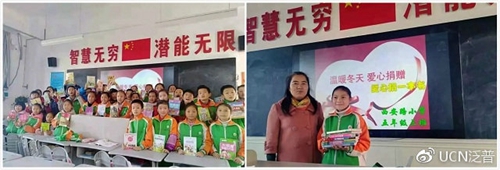 黑板上播放著的“溫暖冬天,愛心捐贈”的畫面,見證了這次的愛心傳遞,活動在老師的安排下有序展開。站立在黑板前的孩子們捧著書綻放笑顏,這里是活動最美的地方。小朋友們把學(xué)習(xí)用品捐給了有需要的孩子,溫暖彌漫了整個校園。