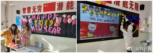 在早前的元旦節(jié)到來之際,納米觸控黑板換了一身新衣服,各種各樣的氣球、彩帶與花束都貼在了黑板上。孩子們動起自己的小手,用童真裝飾著這一美好的瞬間。Happy New Year的標(biāo)語、火到不行的小豬佩奇、星星氣球……把黑板布置地十分美麗。充滿新年味道的教室里,樂器、舞蹈、唱歌、武術(shù)……各式表演輪番上陣,大家一起慶元旦、迎新年,笑語不停。