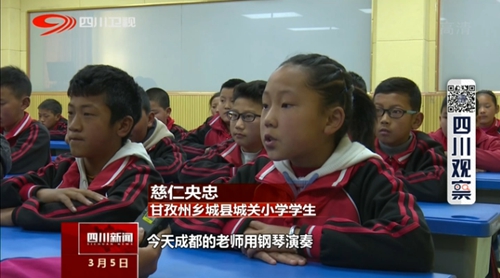 甘孜州鄉(xiāng)城縣城關(guān)小學(xué)學(xué)生慈仁央忠說(shuō):“今天成都的老師用鋼琴演奏,給我們上了一堂生動(dòng)而有意義的音樂(lè)課!