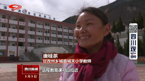 甘孜州鄉(xiāng)城縣城關(guān)小學(xué)教師唐桂茶說(shuō):“遠(yuǎn)程教育課可以拉近偏遠(yuǎn)地區(qū)與城市教育之間的距離,更新教學(xué)理念,創(chuàng)新課堂模式!