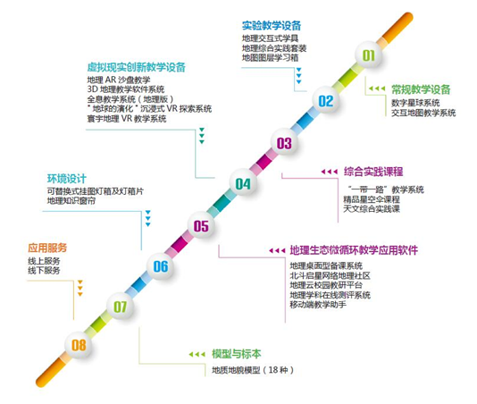 中教啟星自2006年以地理學(xué)科為起點(diǎn),開啟了學(xué)科裝備探索的征程,目前全國有超過6000所學(xué)校的老師在中教啟星數(shù)字化地理專用教室開展教學(xué)。中教啟星基于數(shù)字化與虛擬現(xiàn)實(shí)技術(shù)的創(chuàng)新型地理專用教室是指以“數(shù)字化”為主導(dǎo),以數(shù)字星球系統(tǒng)為核心,遵循教育部《中學(xué)地理專用教室建設(shè)規(guī)范》,配備常規(guī)教學(xué)類的交互地圖教學(xué)系統(tǒng);天文實(shí)踐類的課程資源包;創(chuàng)新應(yīng)用類的虛擬現(xiàn)實(shí)VR教學(xué)系統(tǒng)、地理AR沙盤、全息教學(xué)系統(tǒng)、3D地理教學(xué)系統(tǒng);實(shí)驗(yàn)活動(dòng)類的地理交互學(xué)具、地理綜合實(shí)踐套裝;并輔以教學(xué)通用設(shè)備以及環(huán)境創(chuàng)設(shè),能夠把地理課本上的知識(shí)更直觀、生動(dòng)、全方位的精彩呈現(xiàn),讓學(xué)生打開傳統(tǒng)的思維模式,以一種更加生動(dòng)活潑的方式學(xué)習(xí)地理,有利于教師教學(xué)活動(dòng)的開展和學(xué)生學(xué)習(xí)效率的提高。在功能定位上,方案能夠完美解決常規(guī)教學(xué)、實(shí)驗(yàn)教學(xué)、綜合實(shí)踐、創(chuàng)新教學(xué)、虛擬現(xiàn)實(shí)探究等五方面的教學(xué)需求,并為教學(xué)應(yīng)用培訓(xùn)、教學(xué)教研會(huì)議、專家引領(lǐng)成長等提供全方位的服務(wù)支持。