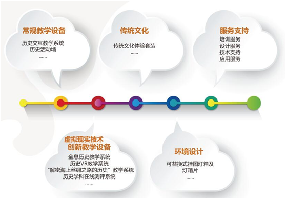 中教啟星歷史學(xué)科創(chuàng)新型專用教室解決方案以數(shù)字化與虛擬現(xiàn)實(shí)技術(shù)為核心,讓教學(xué)專用設(shè)備與資源、創(chuàng)新教學(xué)設(shè)備與課程、傳統(tǒng)文化體驗(yàn)套裝、模型教具及教室文化五大核心模塊真正的融入歷史教學(xué)應(yīng)用中,方案創(chuàng)新應(yīng)用虛擬現(xiàn)實(shí)VR教學(xué)系統(tǒng)、歷史交互教學(xué)系統(tǒng)、全息教學(xué)系統(tǒng)等一批虛擬現(xiàn)實(shí)設(shè)備和數(shù)字化設(shè)備,能夠優(yōu)化歷史教學(xué)目標(biāo)、優(yōu)化學(xué)科教學(xué)過程、強(qiáng)化歷史德育意義,打破學(xué)校歷史課程教學(xué)陳舊不變的教學(xué)方式,滿足學(xué)生與教師的需求,幫助學(xué)生構(gòu)建歷史認(rèn)識(shí)、做好歷史教師的腳手架。同時(shí),在富有多樣性、沉浸性的歷史教學(xué)空間中,學(xué)生能夠在教師的引領(lǐng)下,認(rèn)識(shí)人類社會(huì)發(fā)展歷程,培養(yǎng)歷史學(xué)科核心素養(yǎng),提高綜合實(shí)踐能力,增強(qiáng)對(duì)歷史的興趣,激發(fā)創(chuàng)造力。