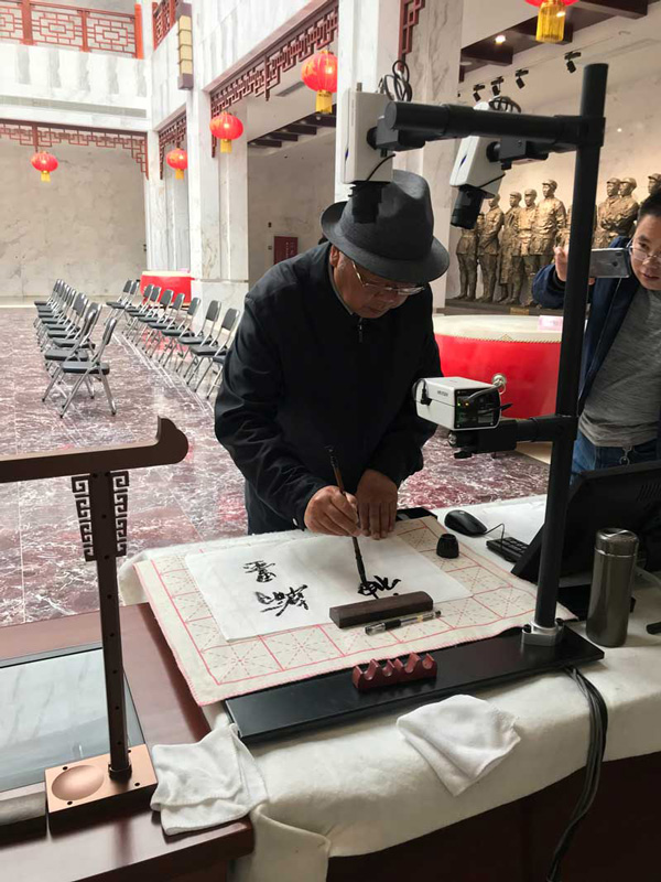 華文眾合應邀攜第五代智慧書法教室前往參展。中國美術家協會副主席王書平、菏澤李榮海美術館名譽館長李榮海等領導蒞臨華文眾合智慧書法教室展位,對其功能、特性經過體驗、了解后,紛紛表示極大的肯定和贊揚。