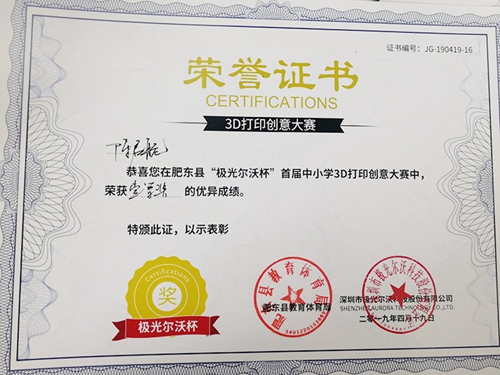 由此可見,基于3D打印技術的創(chuàng)客教育引起全國上下各部門高度重視,這預示著桌面級3D打印機在教育領域的市場將會迅速擴大。極光爾沃作為國內3D打印機一線廠商,有責任也有義務助力3D打印創(chuàng)客教育發(fā)展和3D打印應用普及。通過首屆 “極光爾沃杯”3d打印創(chuàng)意大賽在肥東縣的成功舉辦,也預示著會有更多的中小學參與到創(chuàng)客比賽中來。