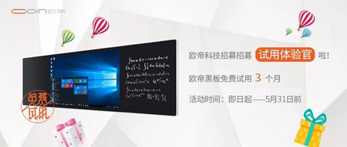 為回饋大眾,令人期待的歐帝科技智慧教室互動黑板公開招募“試用體驗官”啦!我們將會在4月26日到28日第76屆教育裝備展會現場公開招募。