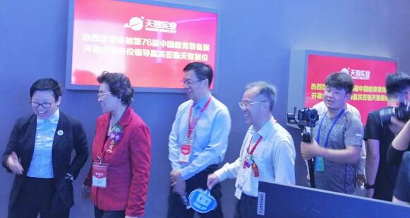 中國關心下一代工作委員會副主任、中紀委駐教育部紀檢組原組長田淑蘭,中國教育裝備行業協會副會長、秘書長夏國明,以及參加開幕式的領導嘉賓蒞臨天智展位參觀指導,并對天智的品牌運營、產品創新和服務水準,尤其是天智能將產品創新與教育改革深度契合的教育情懷,給予了高度贊譽!