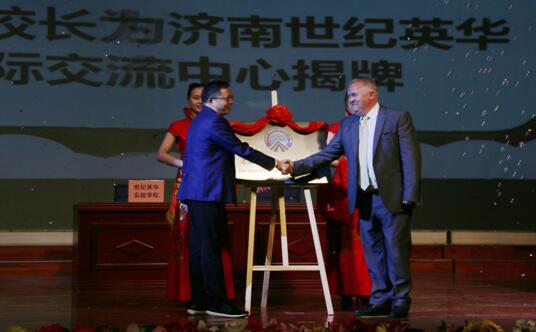 隨后,董事長謝清喜博士和Pete Last校長共同為“濟南世紀英華國際交流中心”揭牌。