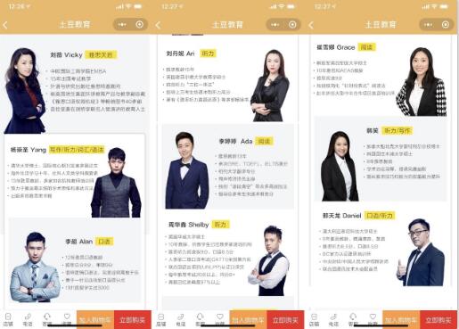 用我自己的例子來說吧。因為得知一個學長雅思口語考了8.5分,極為膜拜,跑去取經(jīng)。學長極力推薦土豆的口語老師李超。因為這個源頭,我開始研究土豆的師資,但畢竟如果整個機構靠一個老師牛,也撐不起整個雅思考試。于是我又去聽了一次雅思天后Vicky老師(也是土豆的創(chuàng)始人,雅思圈內(nèi)非常有名)的試聽課,覺得是真的厲害,不是靠包裝吹出來的那種厲害。聽完課之后我基本就對土豆比較放心了。