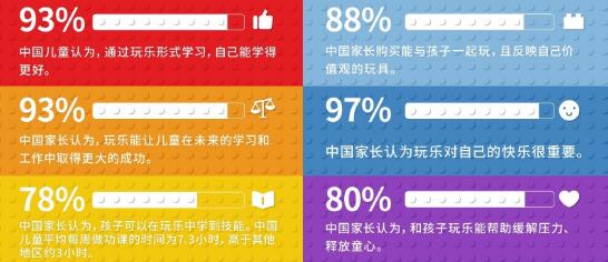 玩樂是否與孩子的成長教育息息相關?2018年,樂高集團致力于探索“玩樂”對于孩子教育的意義,并在全球9個國家進行了樣本訪談,公布了《Play WellReport: 樂高®玩樂報告》,通過12972位受訪人(其中包含來自中國的1034位孩子年齡在1.5歲-12歲的家長;406位年齡在5-12歲的兒童)數據研究表明:高質量的玩樂,對于孩子培養新技能,啟發創意和想象力,享受家庭歡樂時光至關重要: