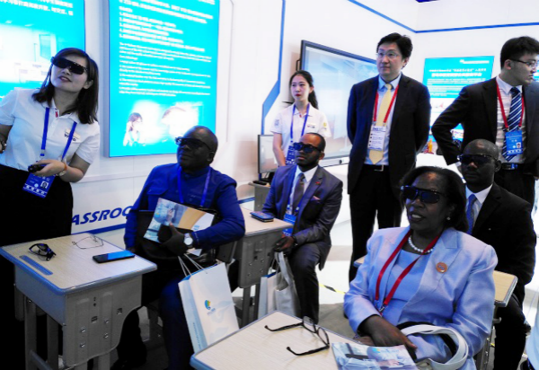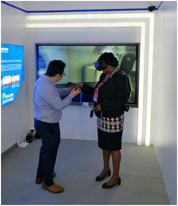 圖:贊比亞教科文常駐代表體驗(yàn)協(xié)同虛擬實(shí)訓(xùn)產(chǎn)品