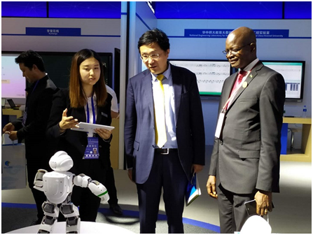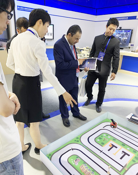 在織未來產(chǎn)品區(qū),南蘇丹教育部部長在認(rèn)真觀看機(jī)器人表演后贊不絕口,他認(rèn)為偉東云教育“織未來”產(chǎn)品不僅具備國際化前沿水準(zhǔn),更集知識(shí)性和趣味性于一體,在幫助青少年進(jìn)行編程學(xué)習(xí)的同時(shí),也能有效提升青少年邏輯思維及創(chuàng)新能力。