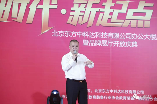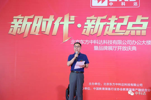中國教育裝備行業協會教育裝備產融結合分會展廳落成典禮同期舉行。教育裝備產融結合分會理事長、北京東方中科達科技有限公司董事長朱良聰對行業領導、企業家的蒞臨表示歡迎,并表示將繼續努力,做好每一件教育裝備產品,努力服務好客戶、服務好學校、服務好教學,為中國教育事業的發展作出新貢獻!