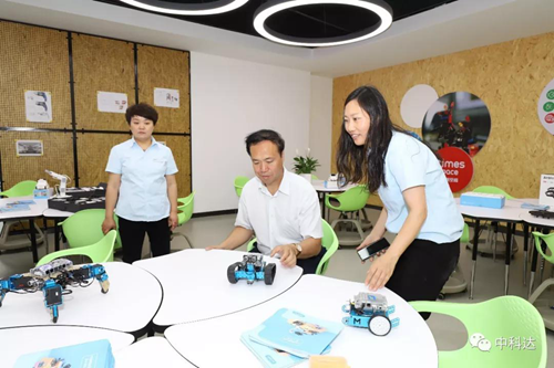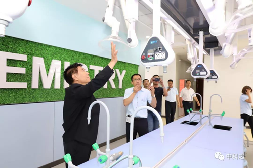 在中國教育裝備行業協會教育裝備產融結合分會理事長、北京東方中科達科技有限公司董事長朱良聰的陪同下,300余名領導嘉賓參觀了教育裝備產融結合分會展廳、中科達辦公大樓和品牌展廳。