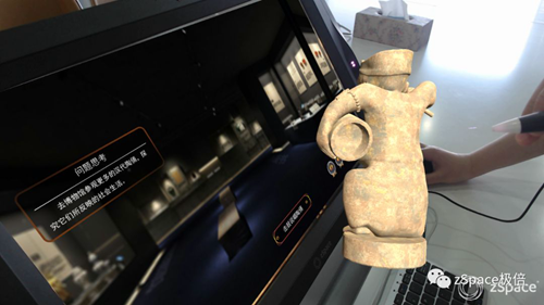 有別于以往在“紙面上”的學(xué)習(xí),極倍zSpace與中教啟星一起,將博物館中的文物搬到課堂中來(lái),為學(xué)生多方位地進(jìn)行展示。仰仗于極倍zSpace的虛擬現(xiàn)實(shí)及增強(qiáng)現(xiàn)實(shí)技術(shù)算法,文物栩栩如生地呈現(xiàn)在學(xué)生面前,學(xué)生可以通過(guò)手中的六維度觸控筆進(jìn)行多角度的旋轉(zhuǎn)和放大,仔細(xì)觀察每一個(gè)細(xì)節(jié),進(jìn)行探究性學(xué)習(xí),激發(fā)更多思考。