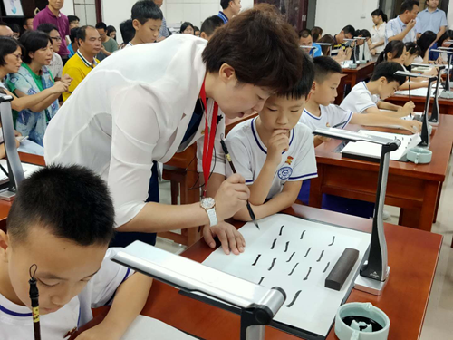 這堂別具特色的書法課,將古典書法與現代科技有機結合起來。比起傳統書法課堂的單向教學,運用吉星智慧書法課堂的教學方式做到了“能看、能評”,簡單高效,打造了一種能夠提高教師書法教學效率的全新模式,語文老師也可以上書法課。