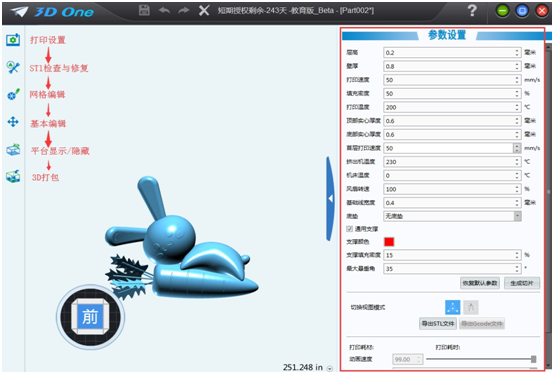 3D One軟件模擬真實成品預(yù)覽效果,方便隨時調(diào)整參數(shù)設(shè)置。同時老師還可用動畫形式快速演示打印過程,讓同學們更加直觀地了解模型的制成,感受3D建模化虛無為真實的魅力,激起學生學習青少年三維創(chuàng)意設(shè)計軟件的興趣。