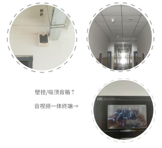 在行政樓、教學樓、圖書館、宿舍樓布署設計每一層安裝的壁掛音箱、吸頂音箱,采用全分頻設計,聲音輻射角度大,音質清晰、延時小,除日常接收校園廣播外,可互不干擾接收多音源廣播。而配置的音視頻一體終端,便于學校發(fā)布文字信息和視頻文件通過此終端更直觀的播放顯示出來,同時,還可將服務器里的文字視頻內容通過連接LED屏播放顯示。