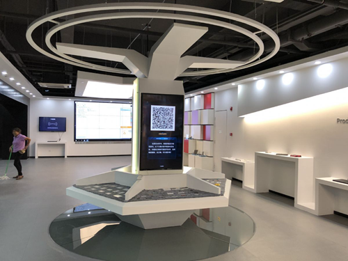 該展廳總占地面積1500多平米,設計風格極具科技感,展示了從智慧城市到智慧教育等全產業物聯網解決方案。