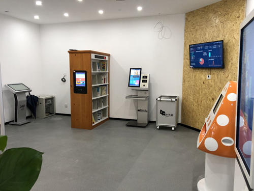 進入展廳左拐,穿過企業榮譽文化墻,便來到“智慧新生活”應用展廳。該展廳展出產品包括智慧微型圖書館、智慧校園物聯網、24小時自助閱覽室、智慧生活視頻、智能梳妝鏡、24小時無人超市等。