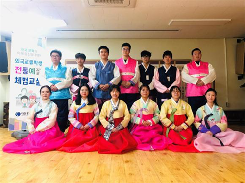 2019年暑期研學(xué)項(xiàng)目,來(lái)自浙江農(nóng)林大學(xué)、河北工業(yè)職業(yè)技術(shù)學(xué)院、河北化工醫(yī)藥職業(yè)技術(shù)學(xué)院、山東理工職業(yè)技術(shù)學(xué)院的40余名學(xué)生分批開(kāi)展了短期研修學(xué)習(xí)。研學(xué)課程中,特別設(shè)置有眾多內(nèi)涵豐富的特色文化體驗(yàn)、韓語(yǔ)提升、專業(yè)技能學(xué)習(xí)類(lèi)項(xiàng)目。本土韓語(yǔ)學(xué)習(xí),培養(yǎng)學(xué)生語(yǔ)言興趣和對(duì)語(yǔ)境、語(yǔ)法的提升,為就讀韓國(guó)名校奠定語(yǔ)言基礎(chǔ);特色文化體驗(yàn),開(kāi)設(shè)有韓服、料理飲食、泡菜、陶藝課、手工香皂制作等韓國(guó)文化探訪體驗(yàn)課程,旨在讓學(xué)生感受韓國(guó)傳統(tǒng)文化的魅力,在傳統(tǒng)文化與現(xiàn)代文化相融合的基礎(chǔ)上激發(fā)學(xué)生興趣和對(duì)生活的熱愛(ài);專業(yè)提升學(xué)習(xí),特別針對(duì)設(shè)計(jì)類(lèi)專業(yè)學(xué)生,安排三星企業(yè)創(chuàng)新博物院、動(dòng)漫俱樂(lè)部、藝術(shù)設(shè)計(jì)展等參觀活動(dòng),讓學(xué)生懂得“設(shè)計(jì)來(lái)源于生活,藝術(shù)在于詮釋”,激發(fā)學(xué)生的創(chuàng)作靈感,同時(shí)了解韓國(guó)藝術(shù)類(lèi)的造詣;風(fēng)景名勝游覽,組織學(xué)生參觀景福宮、仁寺洞等歷史勝地,了解韓國(guó)發(fā)展歷史,增長(zhǎng)本土知識(shí)和文化沉淀,培養(yǎng)文化素養(yǎng)。此外,還舉辦了豐富多彩的校外交流活動(dòng),如首爾明洞游、龍仁愛(ài)寶樂(lè)園游、炸雞派對(duì)等,在異國(guó)他鄉(xiāng)放松心情,交流心得。