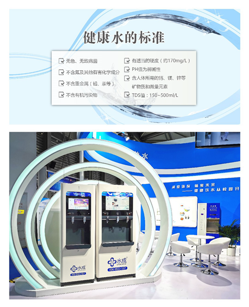 在展會現場,觀眾們可以親身體驗智能飲水,從便捷的飲水過程中感受到專業與安心。水成早在2006年就已進入校園市場,十多年來積累了豐富的技術以及服務經驗,水成堅守著“減塑環保健康校園,讓孩子們喝上健康水”的理念,參與編制了教育部頒布的《中小學膜處理飲水設備技術要求和配備規范》( JY/T0593-2019)以及《公用終端直飲水設備》(T/CECS10018-2019)等多個標準。水成不遺余力地在校園乃至更多公共區域倡導健康飲水理念,讓更多人能了解健康飲水常識,并喝上健康的水。目前,僅上海地區已有85%的高校以及500多所中小學校和幼兒園正在使用水成旗下的“沃達斯”直飲凈水設備。