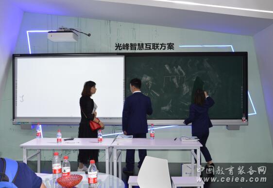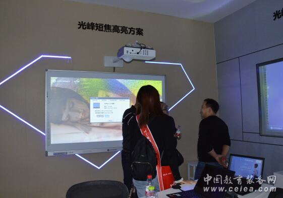 本屆展示會,光峰科技主要帶來了新品“光峰互動智能教學方案”、光峰智慧互聯(lián)方案、光峰超級“投影機+海板”方案、光峰短焦高亮方案、光峰高清會議系統(tǒng)、光峰校園影院方案。