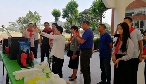 鎮(zhèn)田小學(xué)校長等領(lǐng)導(dǎo)參觀了解極光爾沃3D打印機,咨詢并了解3D打印的行業(yè)現(xiàn)狀應(yīng)用,以及了解3D打印在校園的發(fā)展情況。隨行領(lǐng)導(dǎo)對3D打印模型十分好奇,表示3D打印的物品十分精致,和傳統(tǒng)的制造業(yè)工藝不相上下,機器自動化完成打印。生活小禮盒,擺飾等受到了喜愛,得到了一致好評。