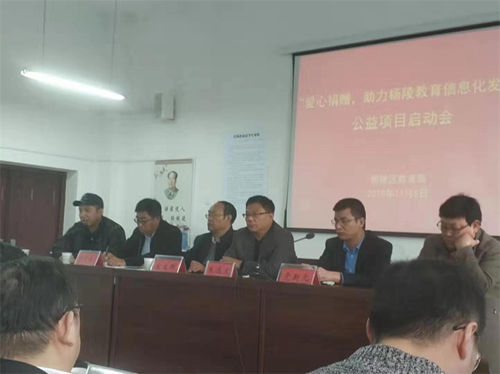 陜西省信息化中心主任朱選文、楊陵區教育局局長黨新元、副局長宋立群、楊陵區電教中心主任徐黨謀及全區中心校以上校園長出席了捐贈啟動會,朱選文主任、黨局長等領導做了重要講話,倡導大力發展楊凌區智慧教育和提升信息化教育水平,在教育信息化時代大展宏圖,積極創新開拓。