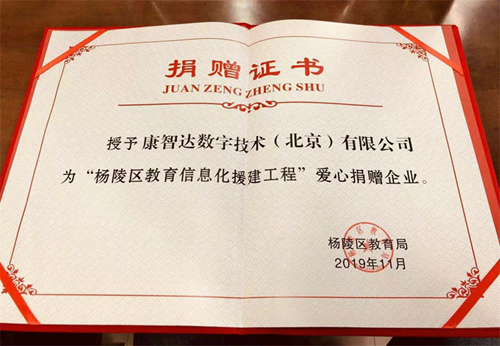 就在大會舉辦在即的2019年11月5日下午,康智達數字技術(北京)有限公司代表參加了“企業捐贈啟動會”并獲得了愛心捐贈證書。