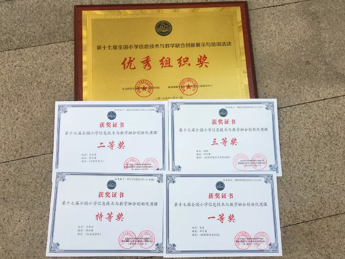 此次活動,稻小四位參賽老師基于天立泰智慧課堂3.0平臺,按照研討課、模擬展示課、觀摩課和智慧學習云課程在比賽中為評委們展示了四節生動的信息化課程。經過專家的評選,稻香村小學四位參賽教師使用天立泰智慧課堂3.0產品分別獲得特等獎、一等獎、二等獎、三等獎。同時,合肥市蜀山區還在本次活動中獲得了優秀組織獎。