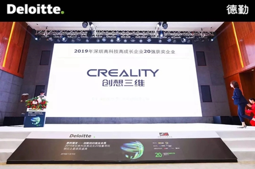11月15日下午,“2019深圳高科技高成長20強暨深圳明日之星”頒獎儀式在深圳天安云谷國際會議廳舉行。深圳市創想三維科技有限公司憑借著持續創新與穩健發展榮獲“深圳高科技高成長20強”,公司聯合創始人、副總裁劉輝林出席典禮并接受頒獎。