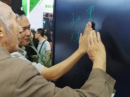 此次展示的新品黑板,在字跡對比度、局部擦寫功能方面有質的飛躍,亮綠色字跡在日常光線情況下,30米外可視。最新研制的局部擦寫功能,采用新技術突破以往產品尺寸限制,精準實現擦寫控制,全面還原教師日常教學的書寫習慣,同時與一鍵清除結合使用,方便省事。能更好匹配教育一體機,實現現有教室黑板的輕松升級。