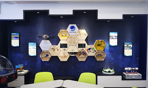 宇宙探索館由主館、觀摩室及兩個樓梯走廊組成;功能上可支持宇宙天文探索、北斗功能定位、虛擬現(xiàn)實、巖石及標本展示、校友介紹、航天知識介紹、錄播、教學(xué)觀摩、地質(zhì)知識展示及宇宙知識展示等。
