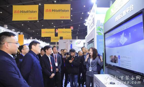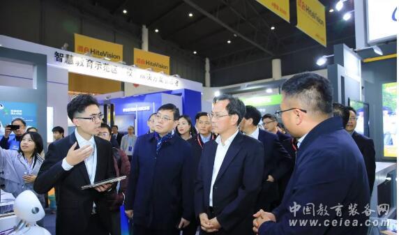 中國教育裝備行業協會會長王富,四川省委教育工委書記,教育廳黨組書記、廳長李江,四川省教育廳副廳長崔昌宏等領導來到科大訊飛所在的展位巡視,詳細了解大數據、人工智能等技術在教育領域的最新應用成果。