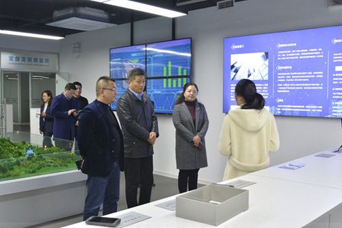 從區(qū)長(zhǎng)一行在毛霖董事長(zhǎng)及高管層的陪同下參觀新立訊溯源大數(shù)據(jù)應(yīng)用實(shí)驗(yàn)室