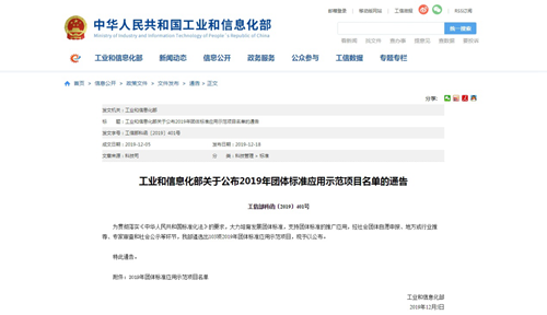 成功入圍工信部2019年團(tuán)體標(biāo)準(zhǔn)應(yīng)用示范項目