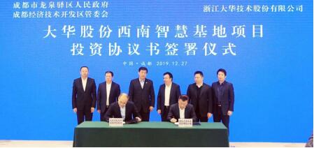12月27日,“大華股份西南智慧基地項目”簽署儀式在蓉城隆重舉行。在成都市委副書記、市長羅強,大華股份董事長傅利泉等雙方領導的共同見證下,成都經開區管委會主任、龍泉驛區政府區長杜海波與大華股份總裁李柯代表雙方簽字。
