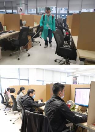 細心的工作人員提前制作大批辦公遮擋板,為員工安心辦公設(shè)立安全屏障,隔離病毒卻不能隔離同事情誼,干凈整潔的辦公室比往日安靜許多,響起的是敲擊鍵盤的噠噠聲,少了往日親切交談、你來我往的溝通——疫情背景下,話雖少但心卻更近了。