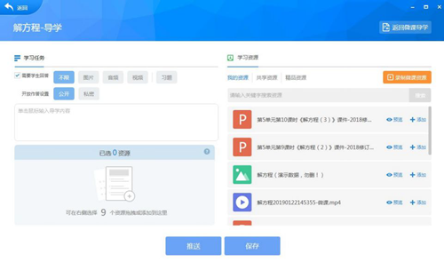 制作好的導(dǎo)學(xué)一鍵推送到學(xué)生空間,在正式課程開始前讓學(xué)生提前預(yù)習(xí)這節(jié)課的內(nèi)容。