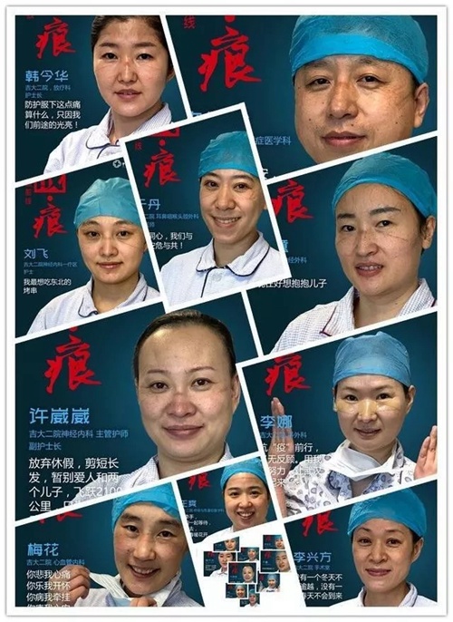 白衣戰士用血肉之軀鑄成防線隔著層層疊疊的防護設備我們也許看不清你的長相但是深嵌在鼻梁和耳后的勒痕被酒精和消毒液腐蝕的雙手......這些獨特的印記,是永遠銘記的勛章