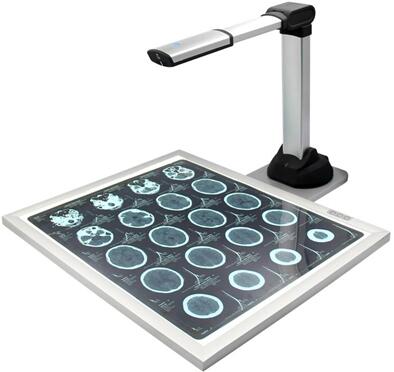 LED燈箱文稿臺,尺寸為491mm×403mm,與高拍儀磁吸固定。能拍攝所有常用規(guī)格的醫(yī)用膠片,一般最常見最大的CT膠片規(guī)格是14″X17″(約35.5X43cm),裁切后的成片尺寸為353.8X429.8mm,可以放得下,并能輕松準確定位和取放。