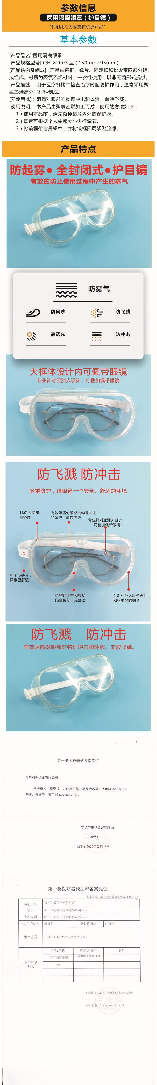 防“疫”產(chǎn)品:青華科教醫(yī)用隔離眼罩