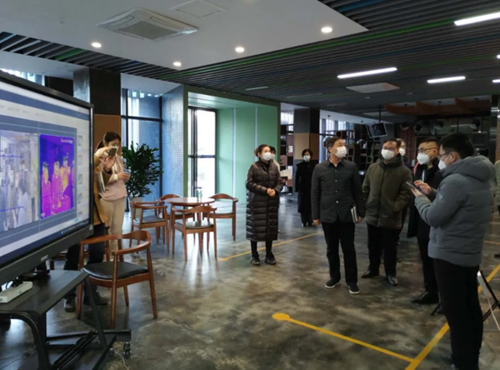 天立泰董事長丁旭東向督導調研組仔細匯報了公司復工復產(chǎn)、公司運行情況。疫情期間,天立泰復工復產(chǎn)通過“立式測溫人證一體機+校園疫情信息管理與防控平臺”、“熱成像相機和黑體+校園疫情信息管理與防控平臺” 等“無接觸”服務產(chǎn)品,有力地解決企業(yè)人群集中、排隊測溫的痛點,有力地保障了企業(yè)復工復產(chǎn)的平穩(wěn)運行。看到園區(qū)內各項疫情防控措施到位、各部門工作開展秩序井然,高新區(qū)管委會副主任曹效記頻頻點頭稱贊。